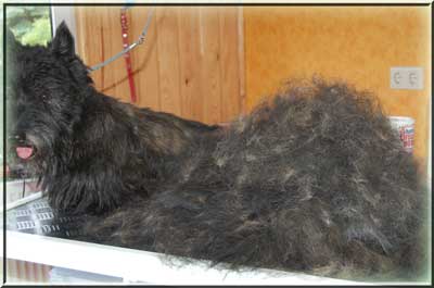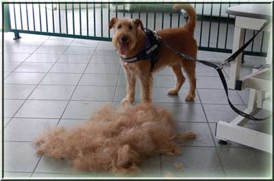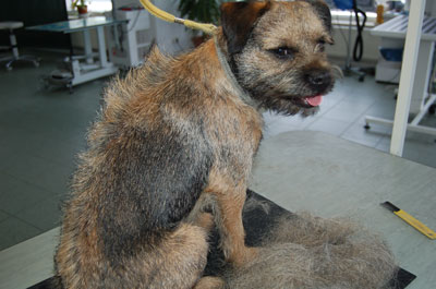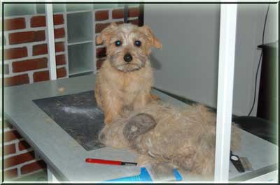 Das Haar zum Trimmen muß die nötige Reife haben um es trimmen zu können. Wird es nur abgeschoren wird die Haarstruktur zerstört und das tote Haar verbleibt im Fell, der Hund beginnt sich zu kratzen um das abgestorbene Haar selbst zu entfernen. Oft geht der Besitzer zum Tierarzt, für den Hund, er sich ständig juckt, beginnt eine Prozedur und oft werden falsche Diagnosen gestellt. Lassen Sie Ihren Liebling nur fachgerecht bei einem Hundefrisör, der sein Handwerk versteht TRIMMEN.