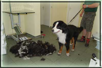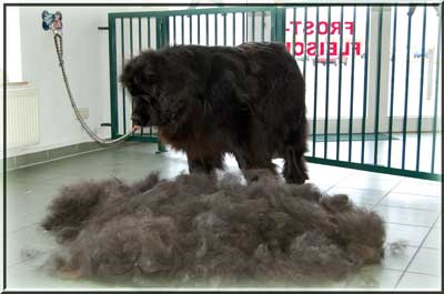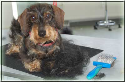 Dackel getrimmt, Neufundländer totes Haar entfernt
