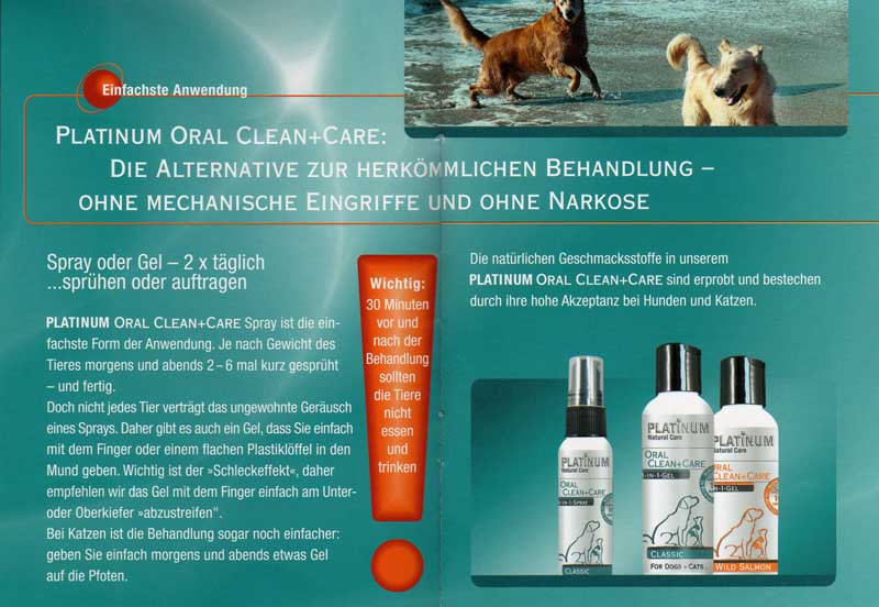 Zeitweise haben wir unser Ultraschallgerät angewand, durch das aufrauen des Schmelzes bildet sich der Zahnstein schnell wieder nach, deshalb empfehlen wir dieses Produkt von der Firma Platinum.