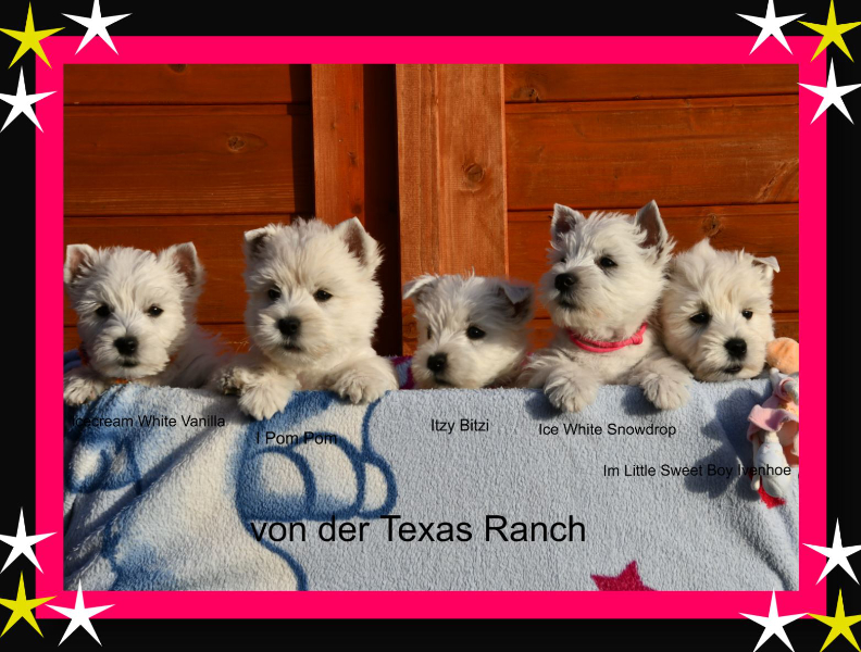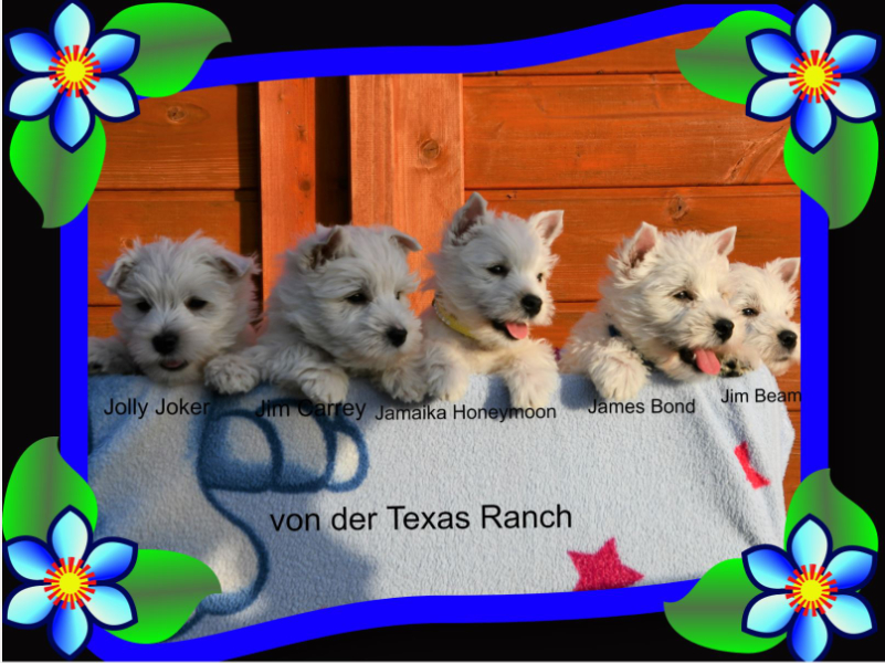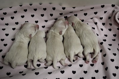 Unsere Joleen hat am 10.11.2019 5 wunderschöne Welpen bekommen. Funny Face, Festus III., Flower Power Girl, Feeling of Romance und Fruitcake. Alle Welpen sind reserviert.