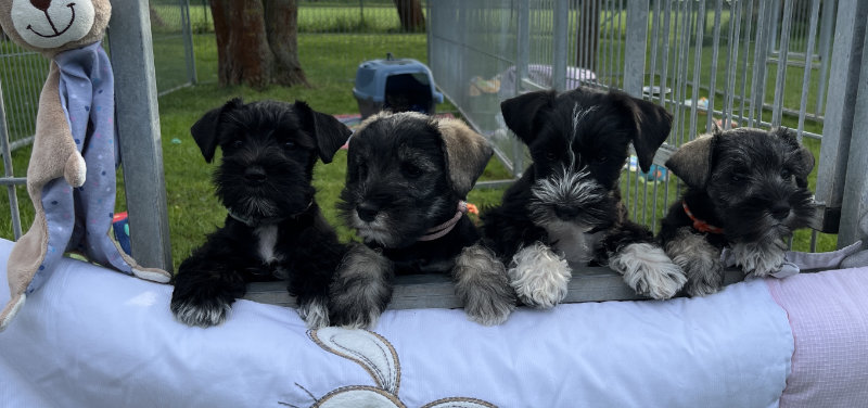 Unsere Welpen wachsen wohlbehütet im Familienverbund auf, während der Aufzucht werden die Kleinen von uns bestens auf alle Alltagsgeräusche geprägt und vorbereitet. Mit der 9. Woche können sie dann von ausgesuchten Interessenten übernommen werden.